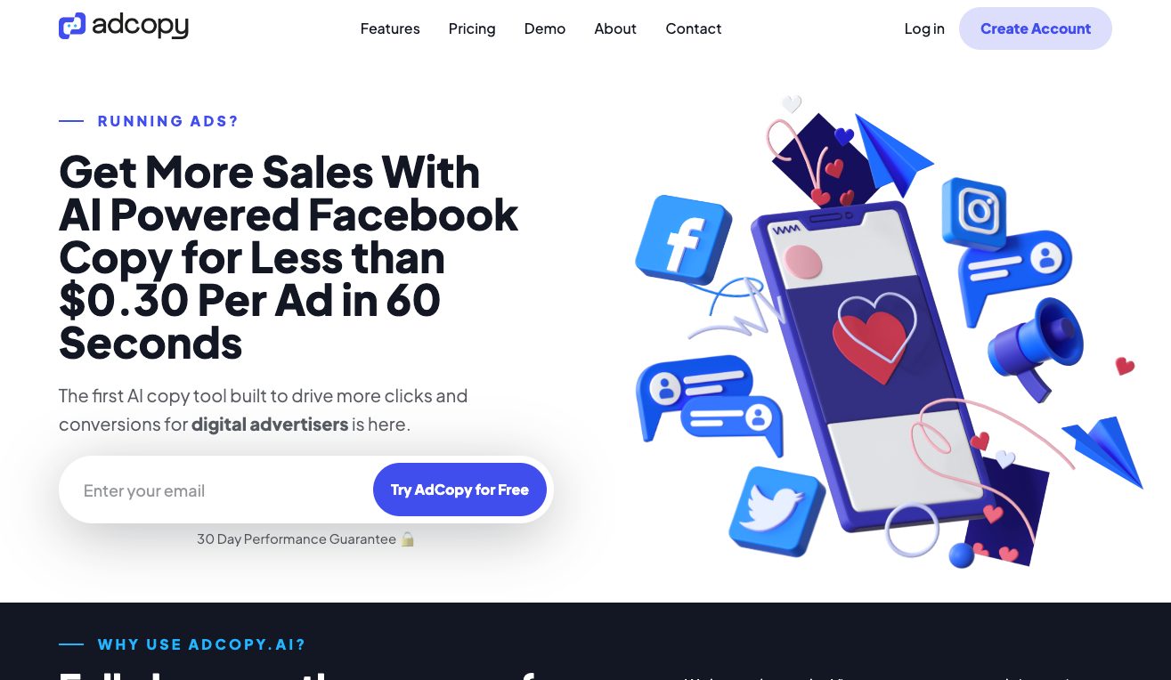 AIツール紹介adcopyは、AIを活用したマーケティングコピー作成ツールで、60秒でFacebook広告のコピーを作成してくれます。adcopyを利用したら、コピーを書くことに時間と労力を使ったり、コピーライターに多額なお金を支払ったりする必要がなくなります。