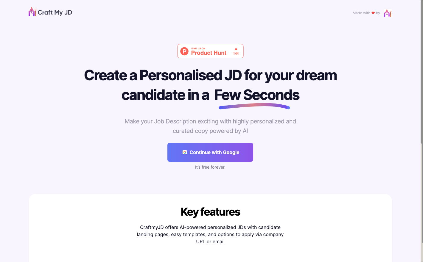 CraftMyJDは、求職者を支援するAIツールです。あなたの仕事に関する情報を入力するだけと、文章を書くことなく、理想的な職務経歴書(ジョブディスクリプション)を生成してくれます。
