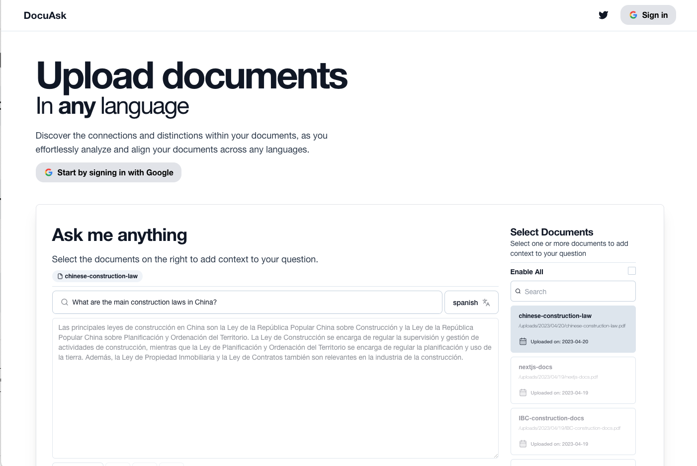 一つまたは複数のPDF資料をアップロードして分析することで、そのPDF資料に関する質問をさまざまな言語で行うことができるAIツールです。
