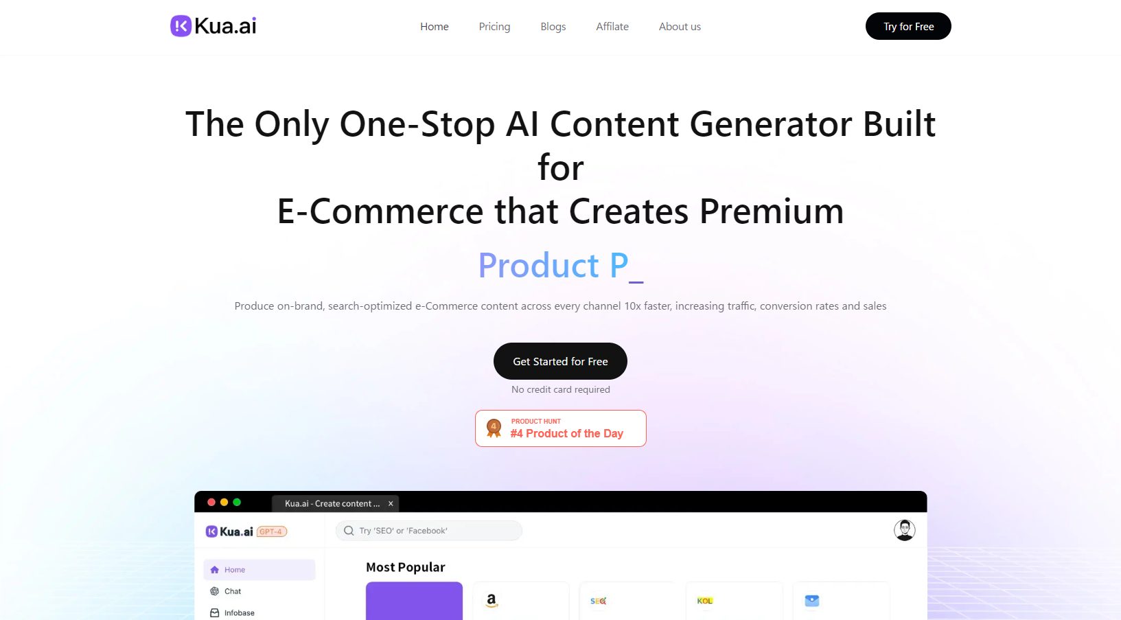 Kua.ai AIツール紹介 2025.10.29 概要説明 Kua.aiは、Eコマースの成功を向上させるためのAIコンテンツ生成ツールを提供する、一元化されたプラットフォームです。利用者は200以上の利用可能なアプリケーションからタスクを選択し、製品名やキーワードを入力するだけで、優れたコンテンツを簡単に作成することができます。これにより、Amazonリスティング、SEOコンテンツ、AI画像作成など、さまざまなコンテンツ作成タスクを迅速かつ効率的に行うことが可能となります1。 Kua.aiのサイトを見る