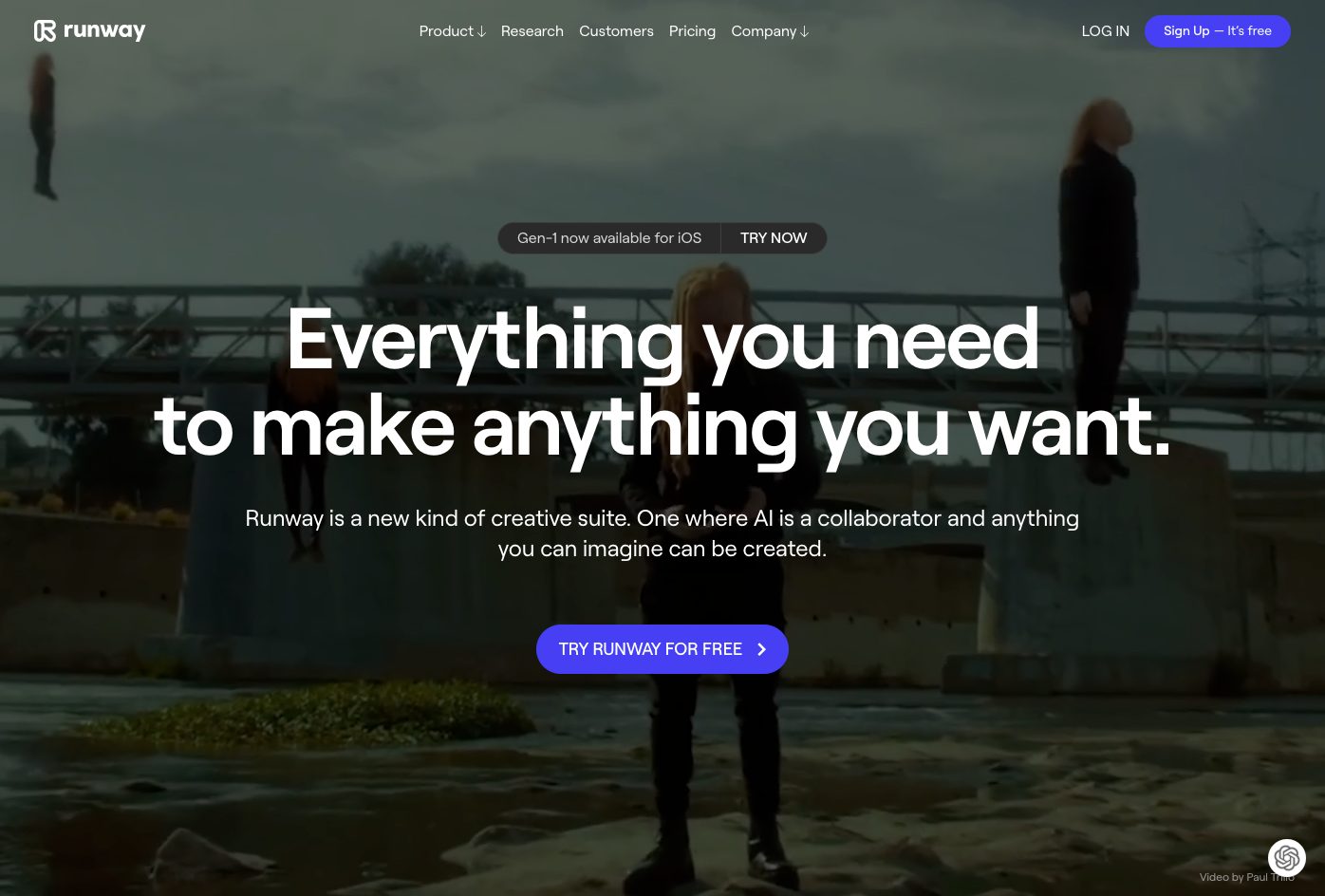 Runway is a new kind of creative suite. One where AI is a collaborator and anything you can imagine can be created.(Runwayは、新しいタイプのクリエイティブスイートです。AIがコラボレーターとなり、想像できるものなら何でも作れるというもの。)