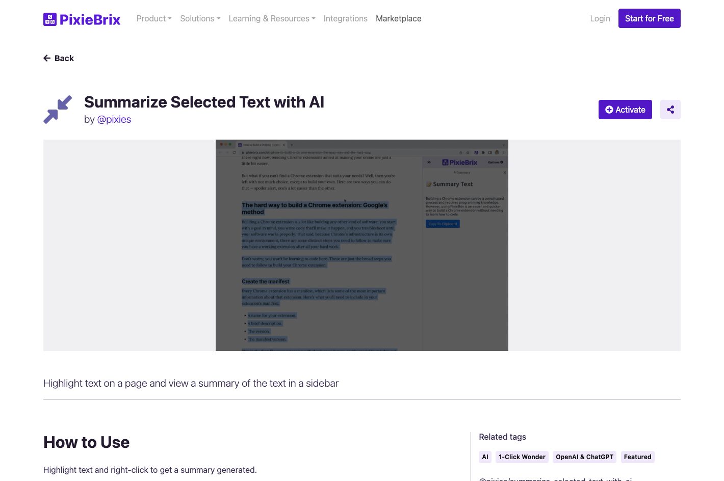 AIツール紹介Highlight text on a page and view a summary of the text in a sidebar(ページ内のテキストをハイライトし、サイドバーでテキストの概要を表示する)