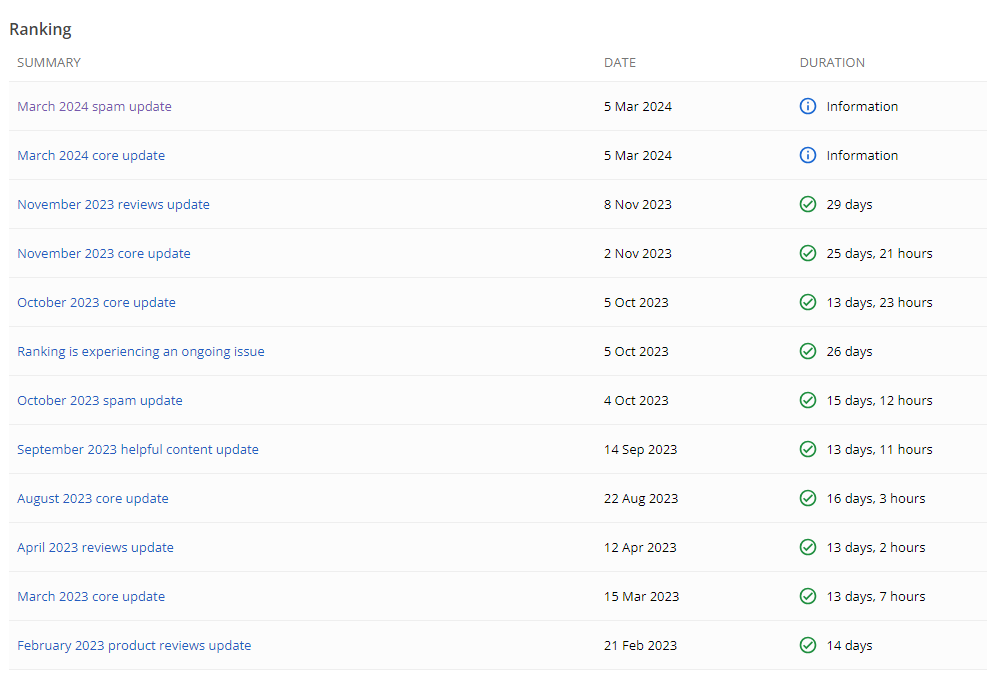 Google社が「2024年3月コアアップデート」を開始したことを発表しました。今回はコアアップデートだけでなくスパムアップデートも同時進行で行われいるらしく、全て完了するまで約一ヶ月かかる見通しとのことです。