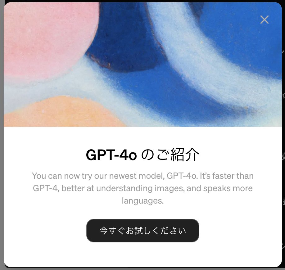 ChatGPTに新しいモデル「GPT-4o」が登場しました。読み方は「ジーピーティーフォーオー」で正式名称は「GPT-4omni」とのこと。ちなみにオムニ(Omni)は「すべての」という意味。