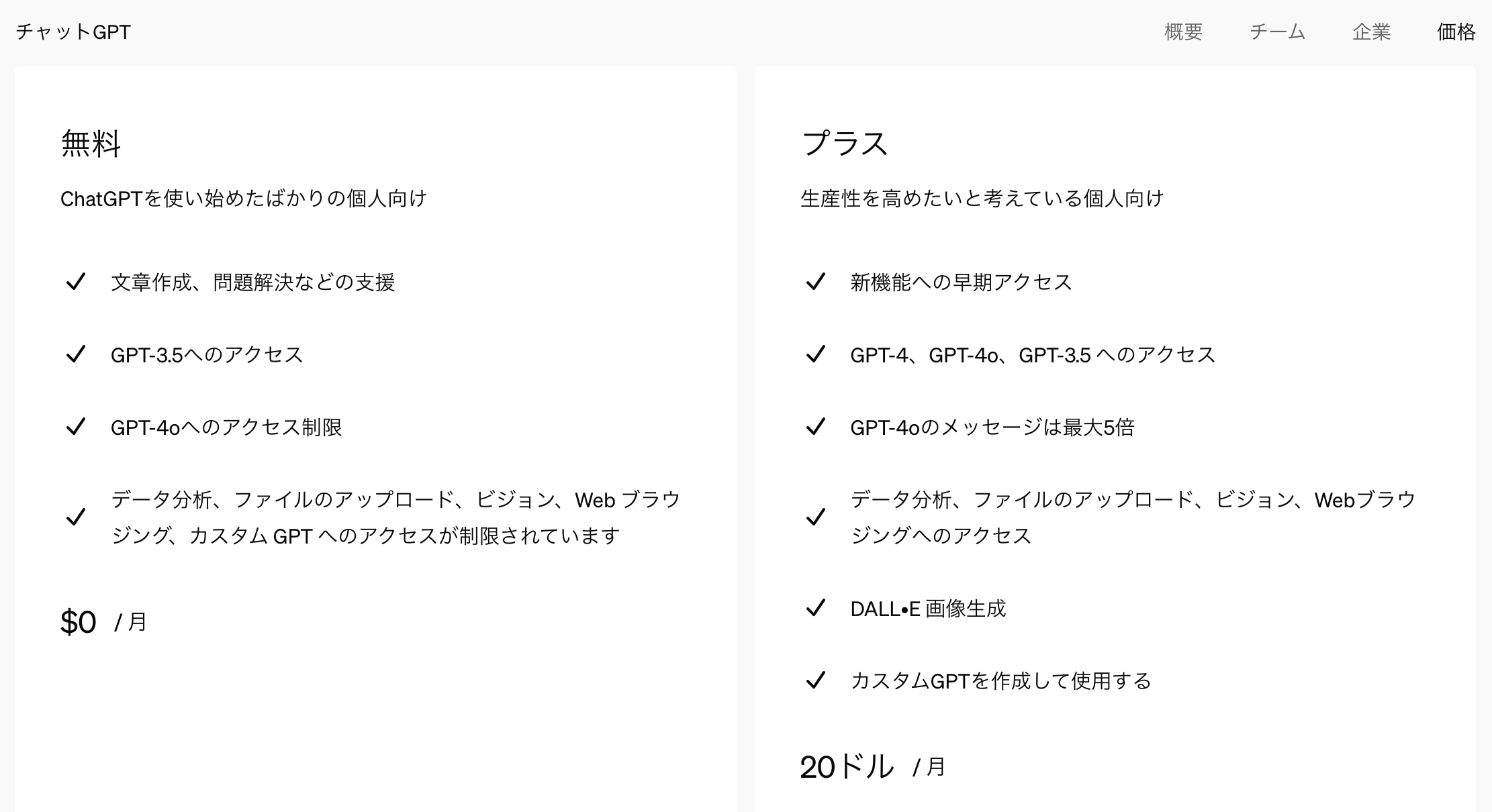 ちなみに画像生成やGPTsの作成はできないみたいです。
